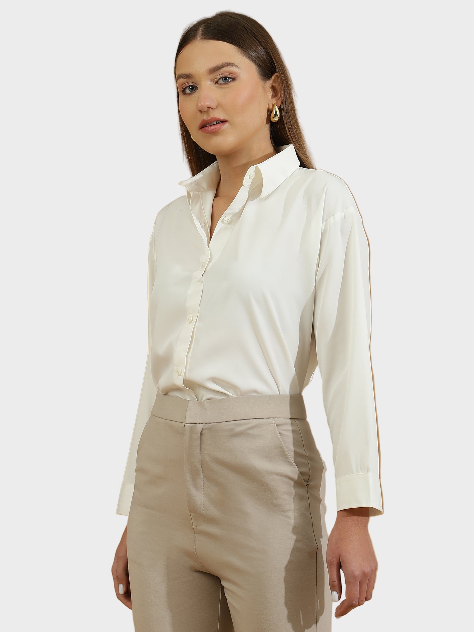 Mock Neck Tee & Pleated Skirt Coord (White)