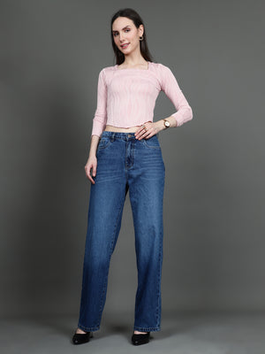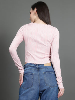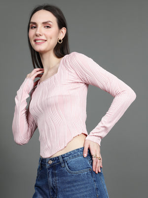 Full Sleeve Square Neck T-Shirt (Baby Pink)