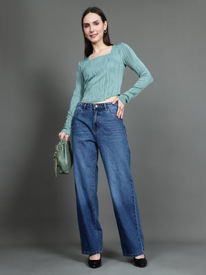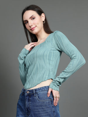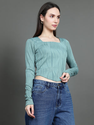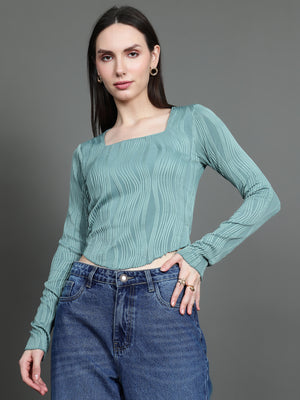 Full Sleeve Square Neck T-Shirt (Basil Green)