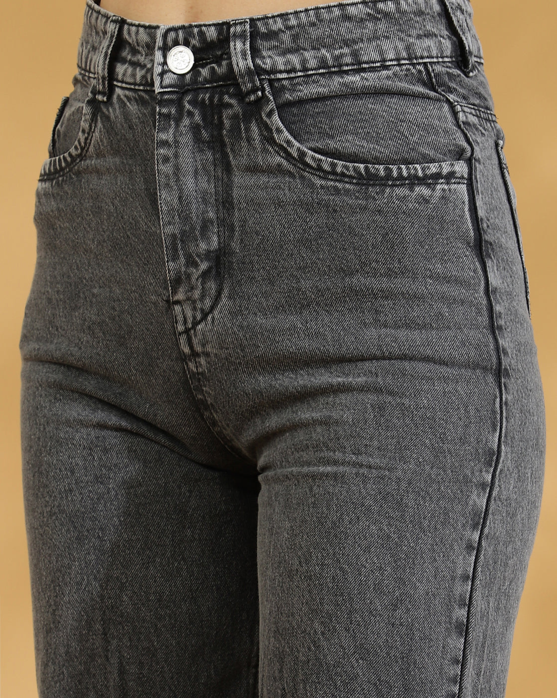 High Rise Distressed Straight fit Jeans (Grey)