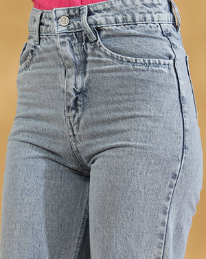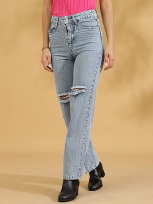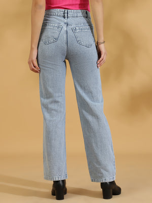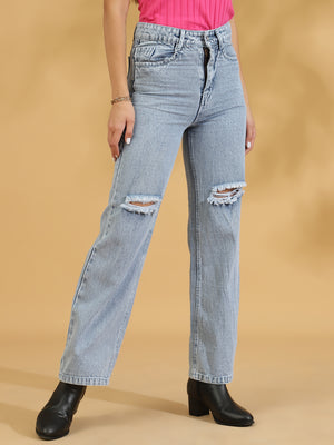 High Rise Distressed Straight fit Jeans (Light Blue)