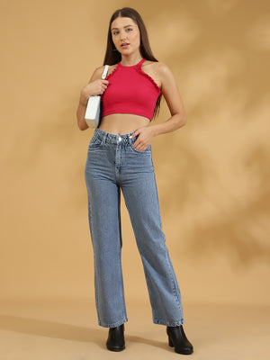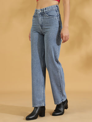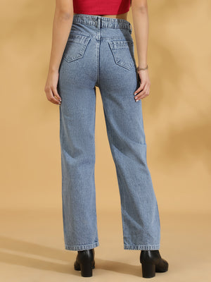 High Rise Straight fit Jean (Light Blue)