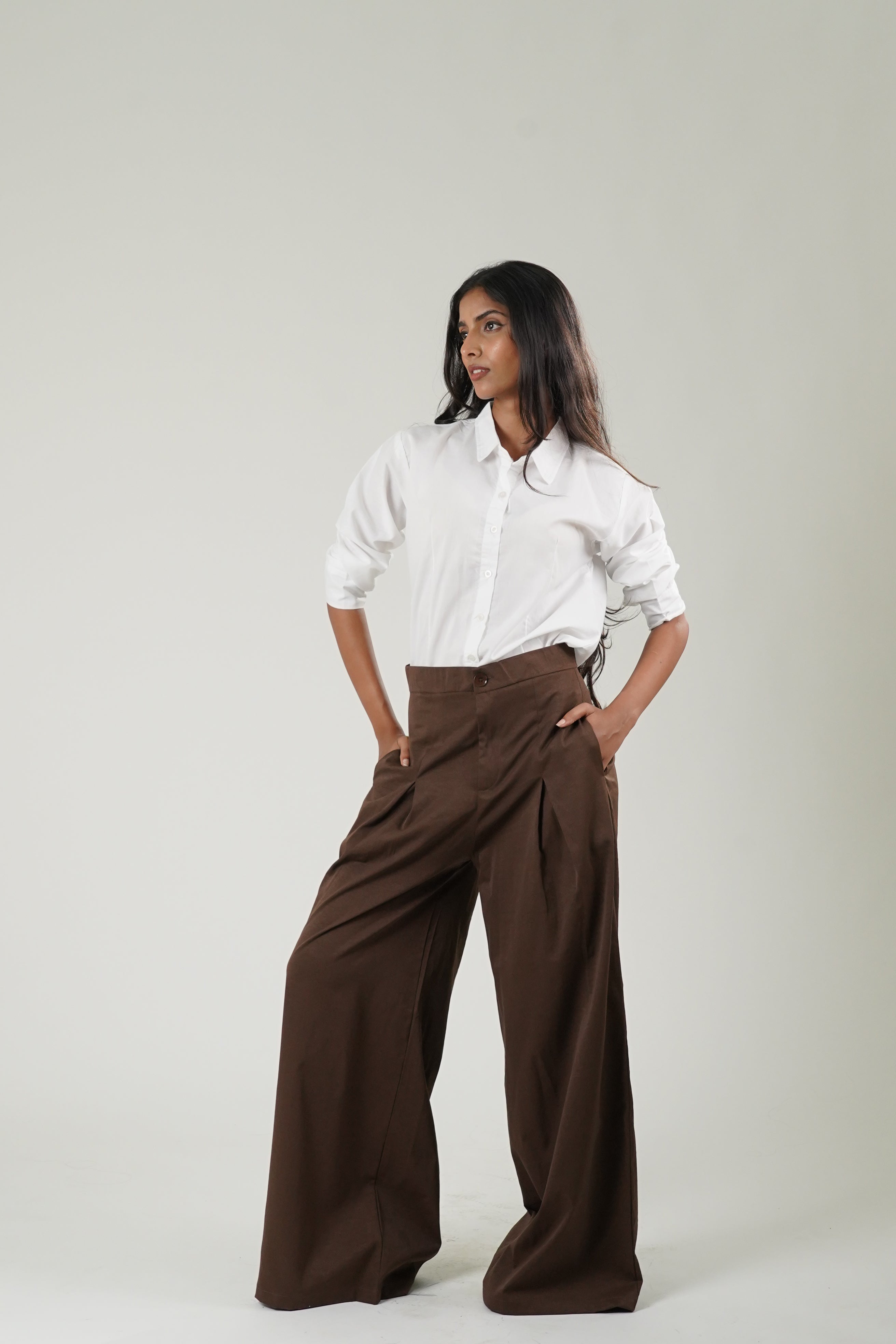 These high-waist wide-leg Korean trousers combine contemporary style with comfort. The high-rise design enhances your silhouette while providing a flattering fit, and the wide-leg cut allows freedom of movement and breathability. Crafted for both casual and professional settings, these trousers offer a versatile addition to your wardrobe, balancing elegance and ease effortlessly.