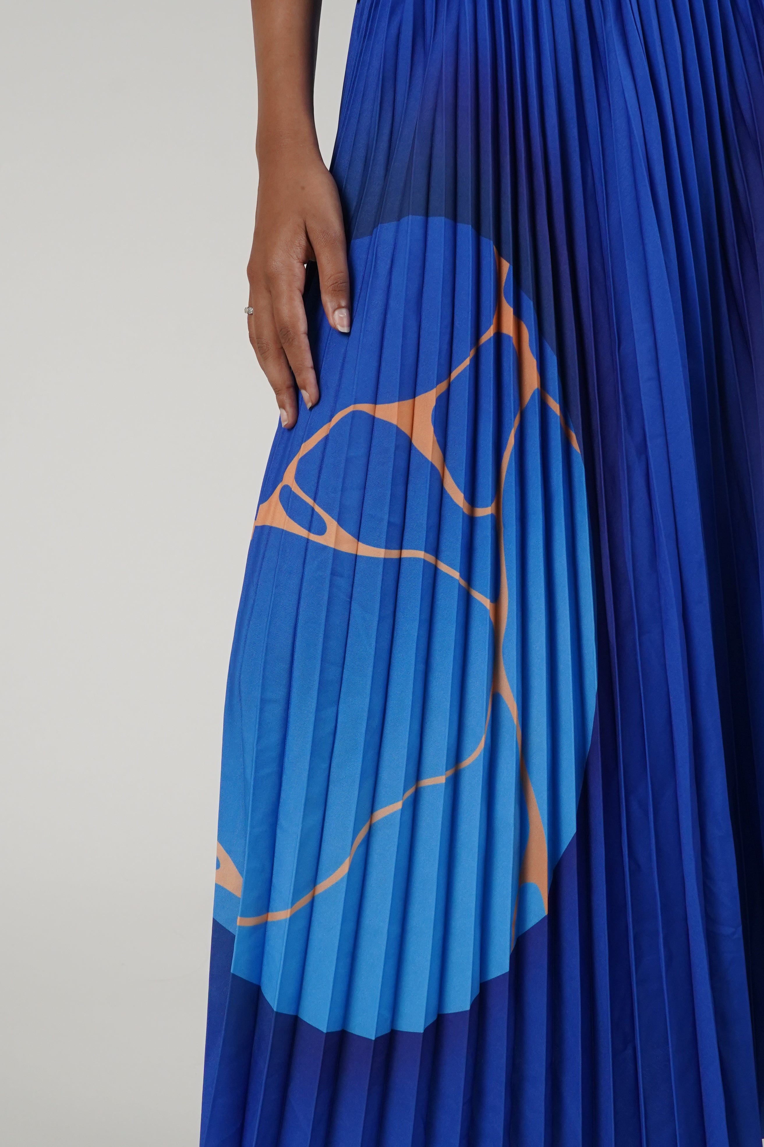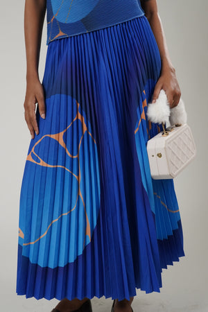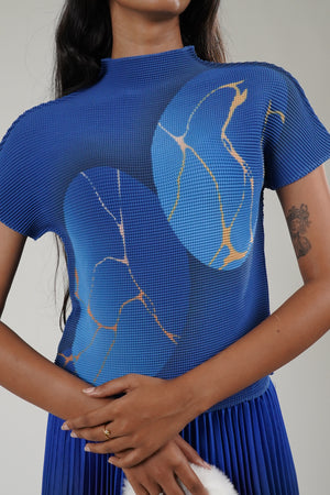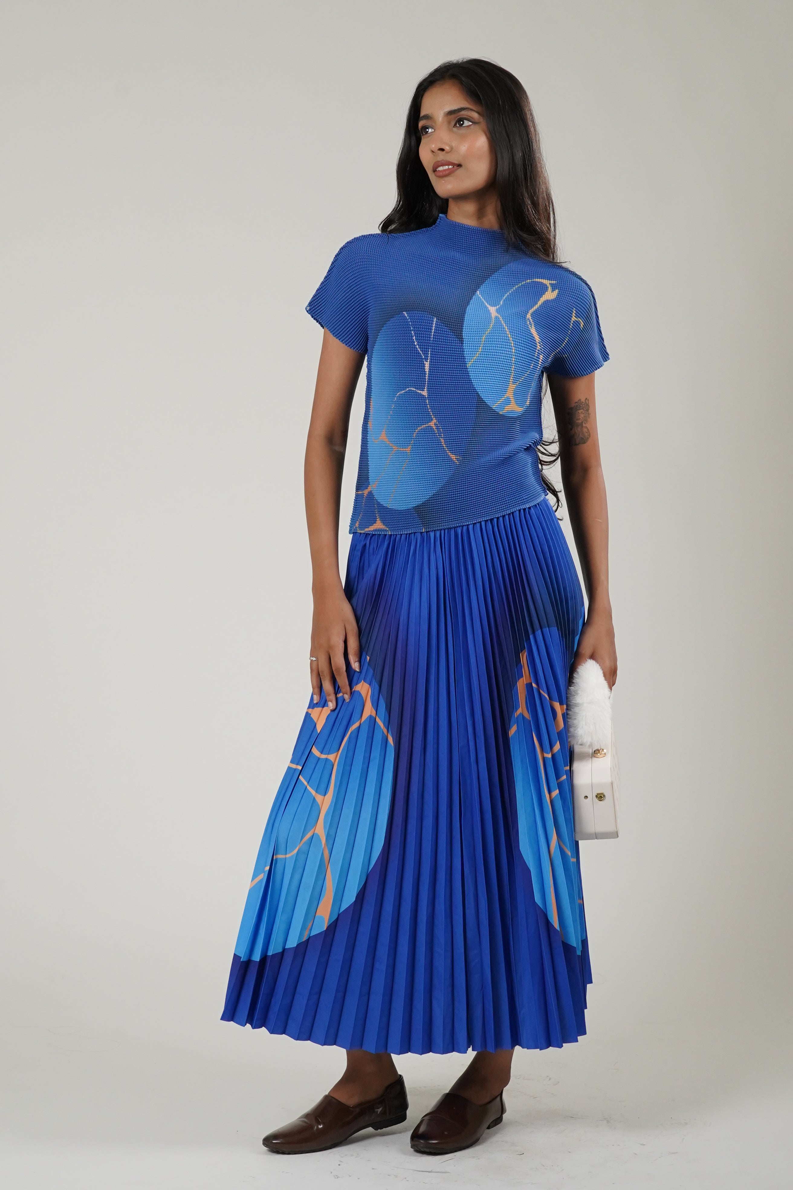 Mock Neck Tee & Pleated Skirt Coord (Blue)