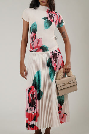 Mock Neck Tee & Pleated Skirt Coord (White)