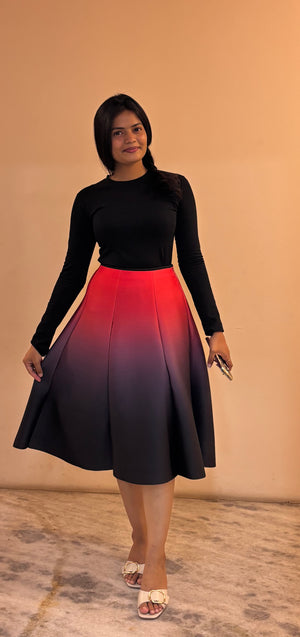 Crafted from premium scuba fabric, this versatile skirt delivers exceptional comfort and durability for everyday wear. The ombre design transitions seamlessly across the garment, creating a sophisticated visual appeal that complements various styling options. The free-size fit accommodates different body types with its stretchy, forgiving construction, ensuring a flattering silhouette without restrictive seams. Ideal for those seeking a modern piece that balances contemporary aesthetics with practical functionality, this skirt transitions effortlessly from casual outings to semi-formal occasions.
