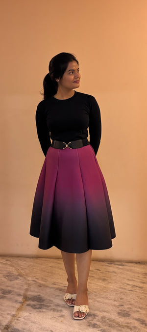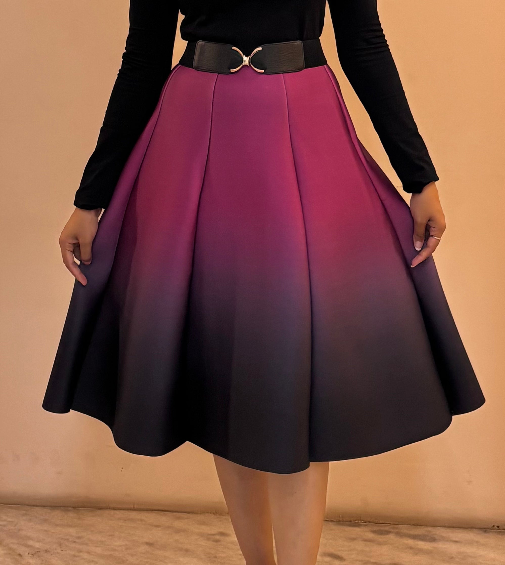 Crafted from premium scuba fabric, this versatile skirt delivers exceptional comfort and durability for everyday wear. The ombre design transitions seamlessly across the garment, creating a sophisticated visual appeal that complements various styling options. The free-size fit accommodates different body types with its stretchy, forgiving construction, ensuring a flattering silhouette without restrictive seams. Ideal for those seeking a modern piece that balances contemporary aesthetics with practical functionality, this skirt transitions effortlessly from casual outings to semi-formal occasions.