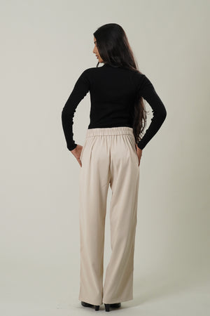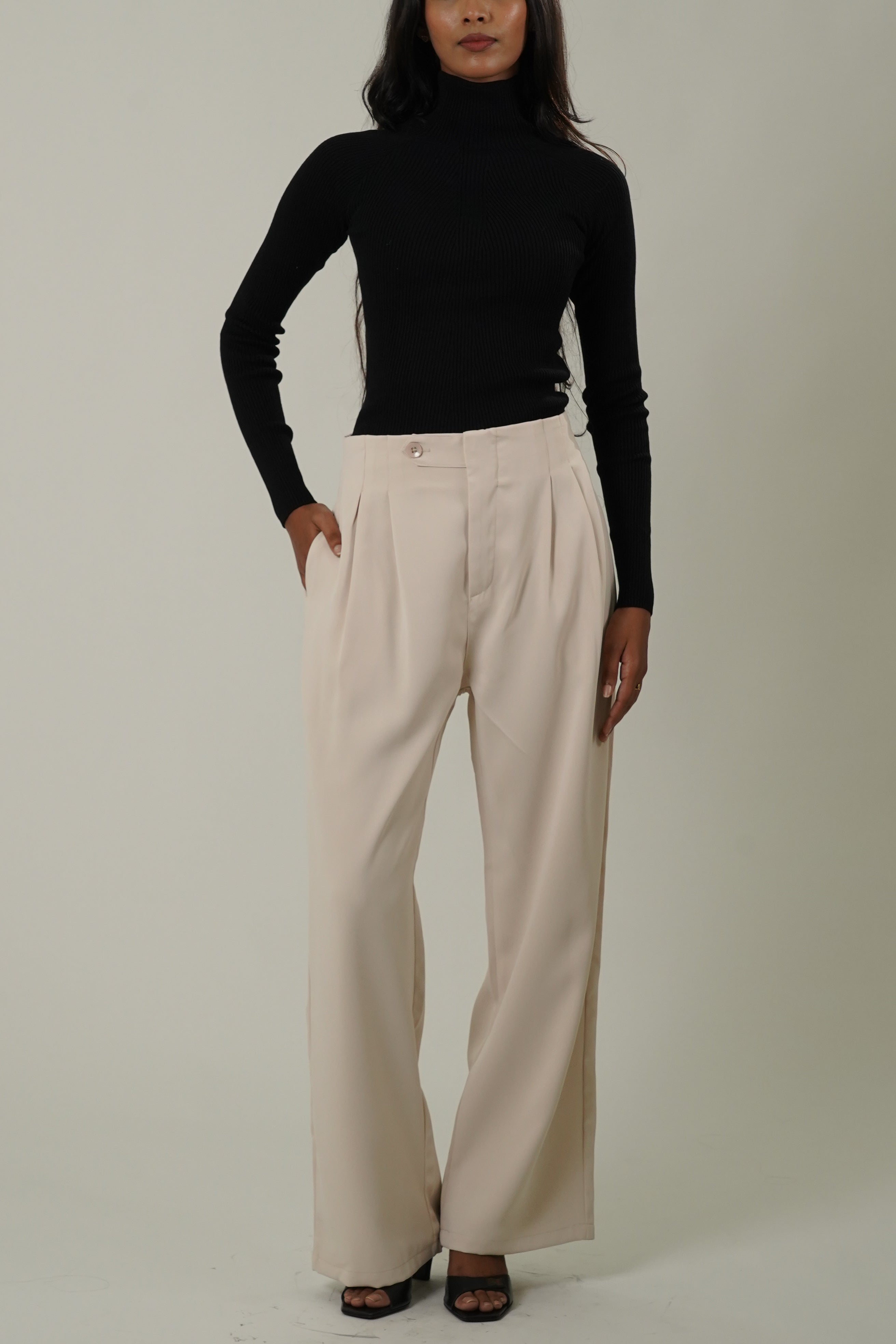 Pleated Wide Leg Korean Trousers (Light Beige)