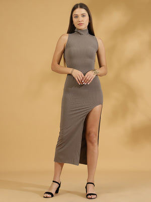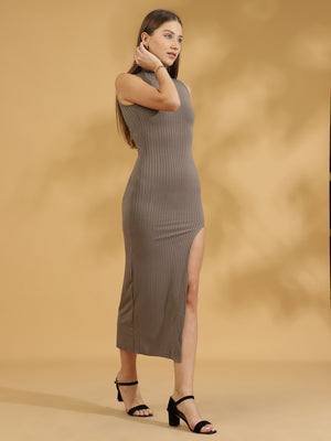 This black ribbed sleeveless bodycon dress is expertly designed to contour the body with a flattering fit. Made from a stretchy ribbed fabric, it provides both comfort and structure, perfect for day-to-night wear. Its minimalist style makes it a versatile foundation piece for sophisticated layering or standout solo looks.