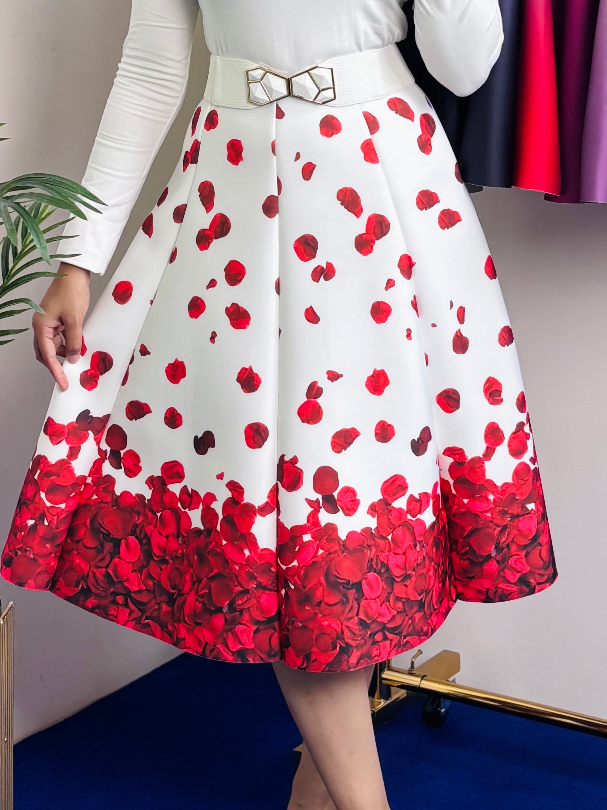 Rose Petal Print Scuba Skirt