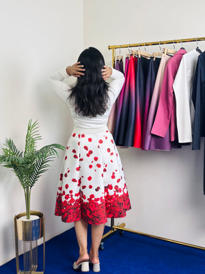 Rose Petals Print Scuba Skirt (White)