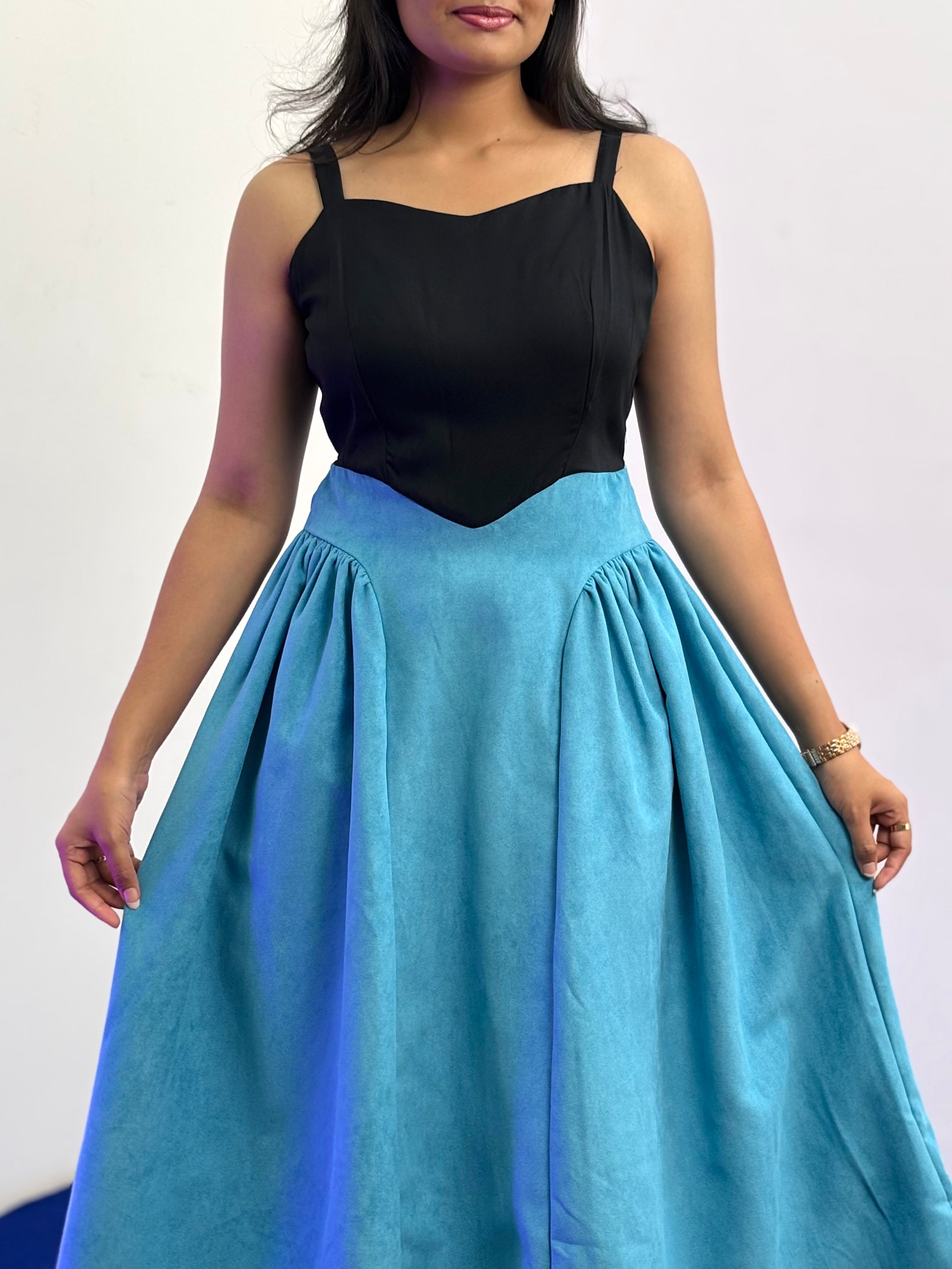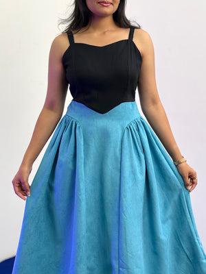Sleeveless A-Line Party Dress ( Black - Blue)