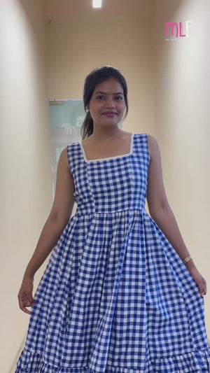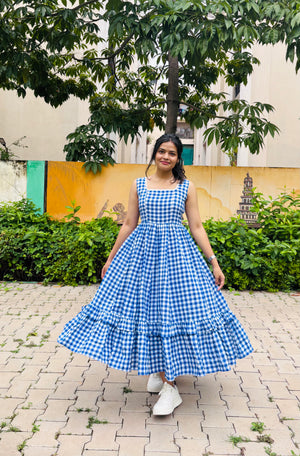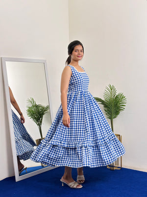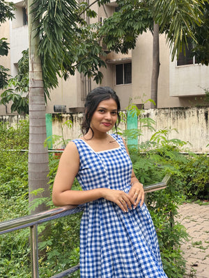 Sleeveless Checked Dress (Blue)