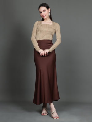 Elevate your style with the timeless elegance of our Solid Satin Long Skirt. Crafted from premium satin fabric, this skirt features a silky-smooth texture and a luxurious sheen that radiates sophistication. Its flowing silhouette ensures a flattering fit for all body types, making it an essential piece for both casual and formal occasions. Perfect for pairing with blouses, crop tops, or tailored shirts, this versatile skirt will be your go-to wardrobe staple.