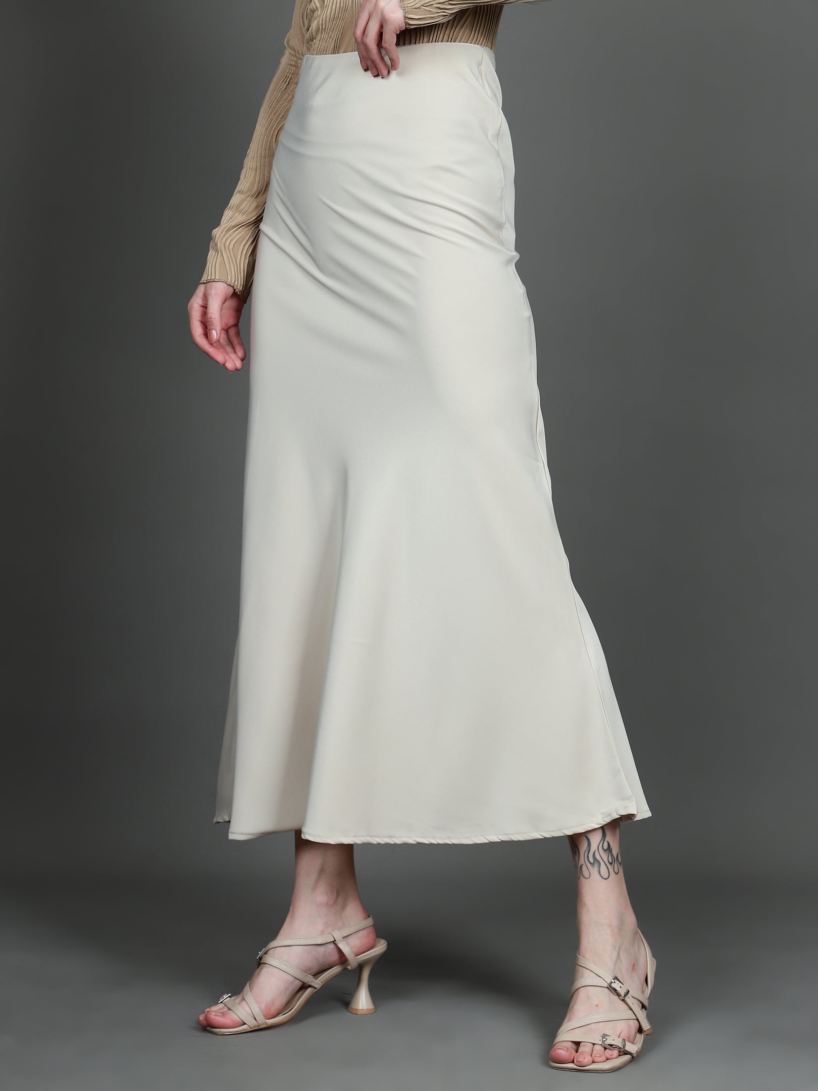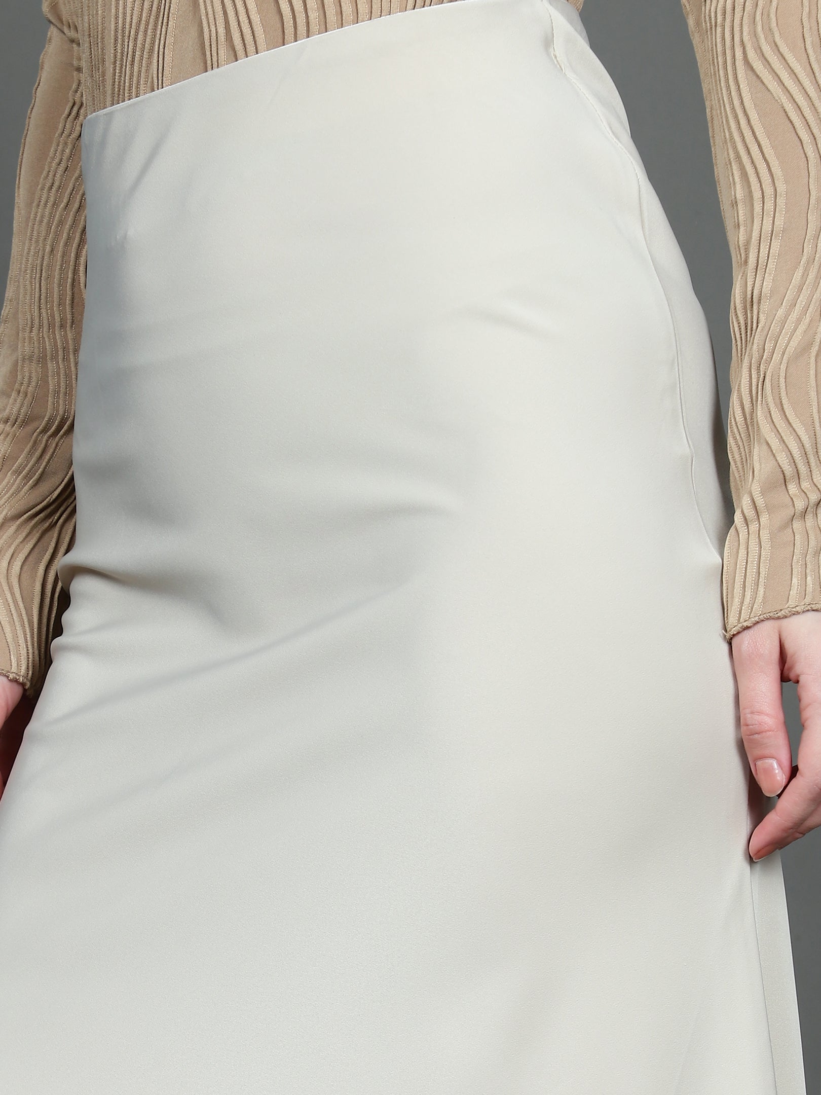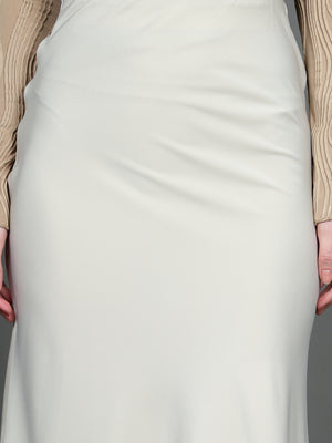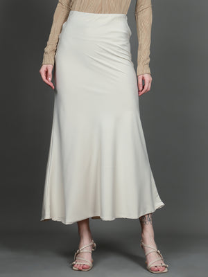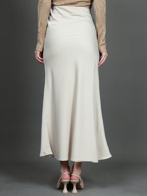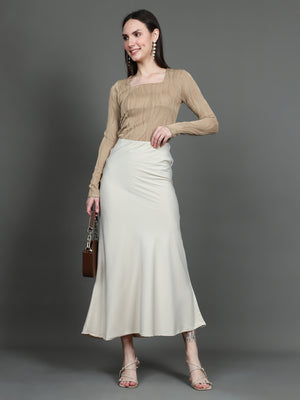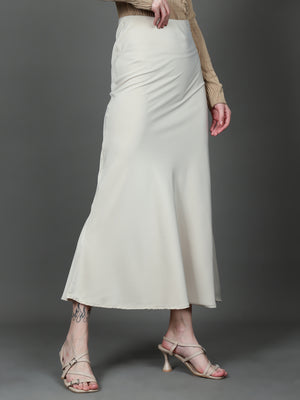 Solid Satin Long Skirt (Light Beige)