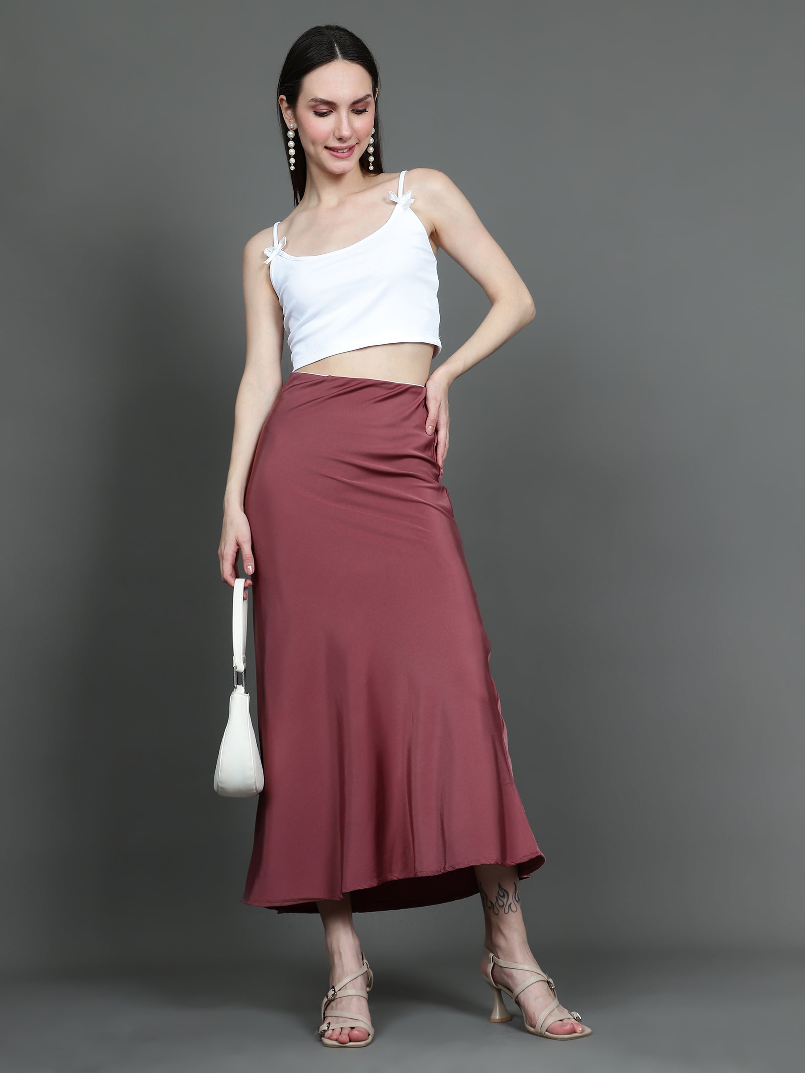 Elevate your style with the timeless elegance of our Solid Satin Long Skirt. Crafted from premium satin fabric, this skirt features a silky-smooth texture and a luxurious sheen that radiates sophistication. Its flowing silhouette ensures a flattering fit for all body types, making it an essential piece for both casual and formal occasions. Perfect for pairing with blouses, crop tops, or tailored shirts, this versatile skirt will be your go-to wardrobe staple.