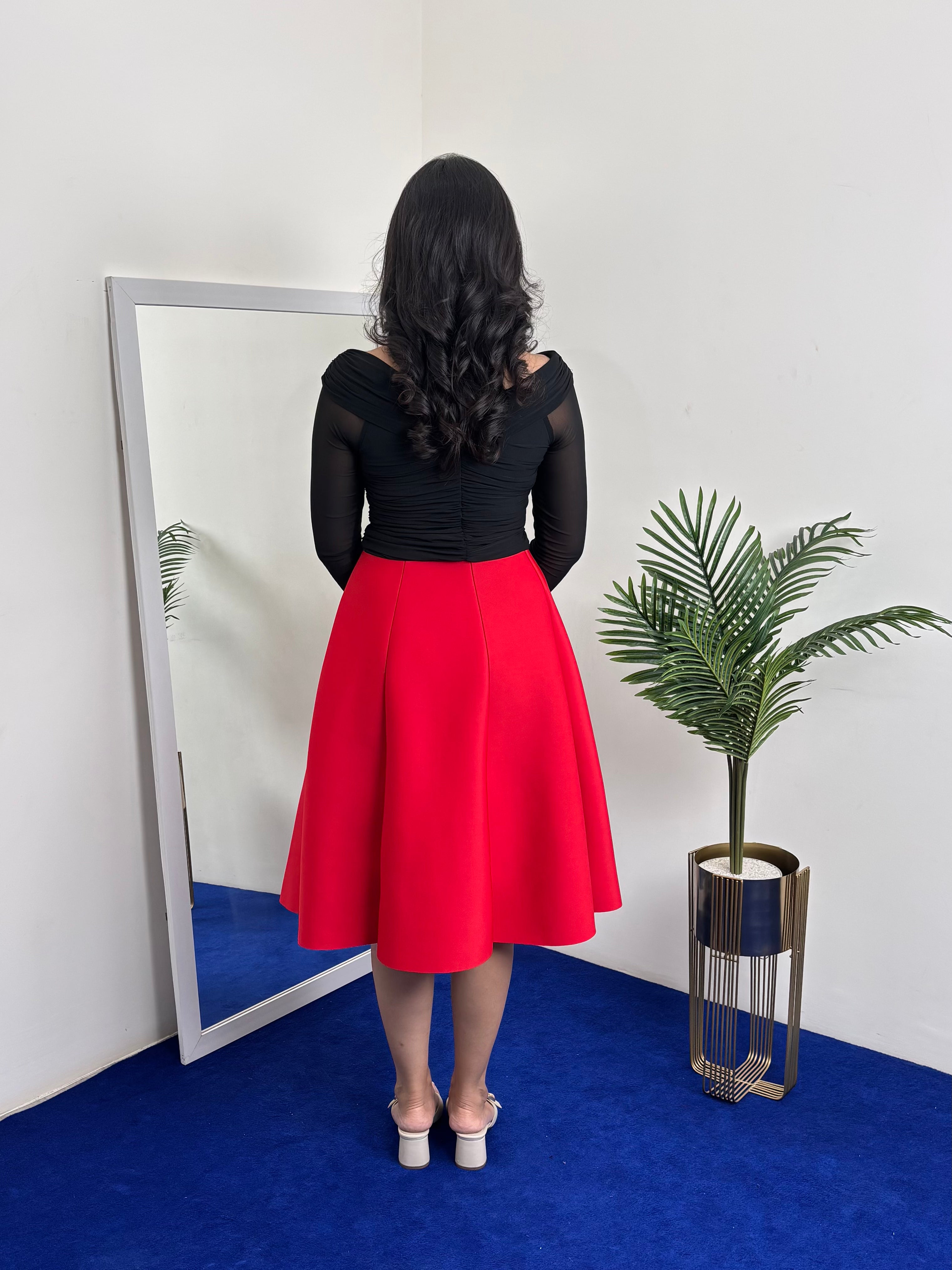 Crafted from premium scuba fabric, this solid skirt delivers a sleek, structured silhouette perfect for elevated occasions. Available in three versatile colorways, each shade offers a refined foundation for party styling—from classic neutrals to bold statement hues. The fabric's inherent stretch and recovery ensure all-day comfort without compromising the polished, contemporary aesthetic. Ideal for cocktail events, celebrations, and upscale gatherings where modern elegance meets wearable sophistication.