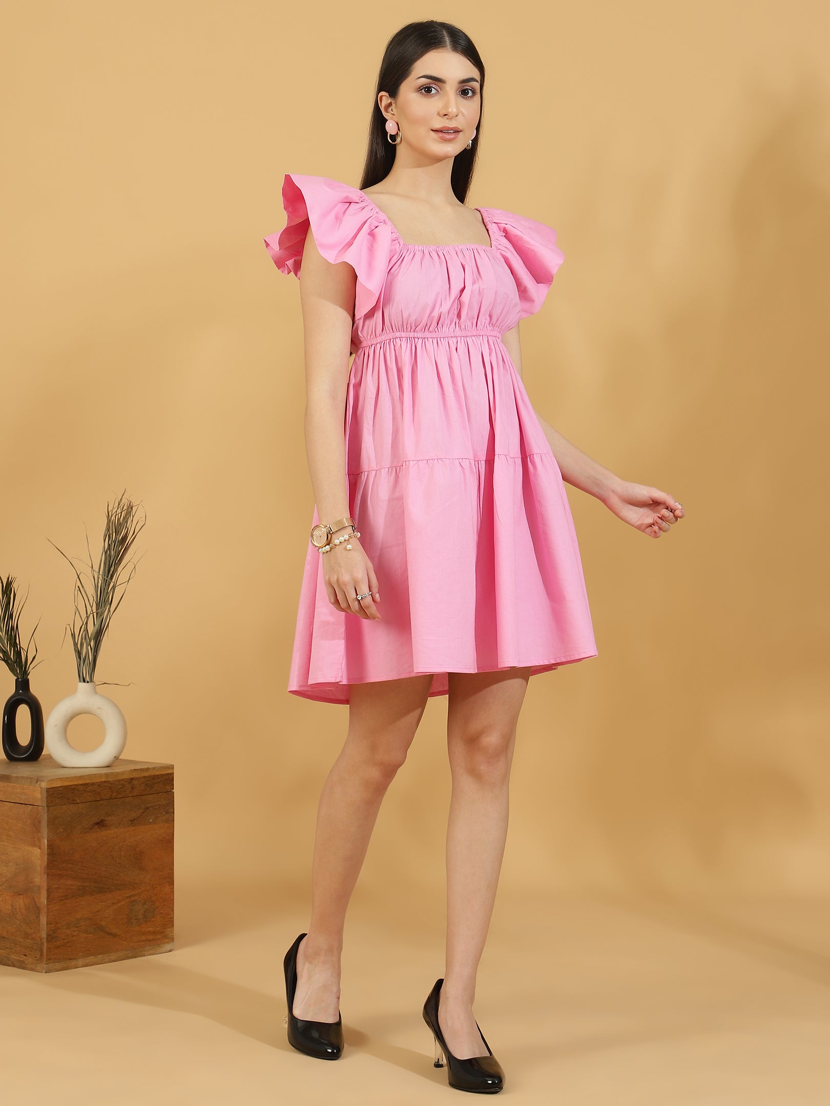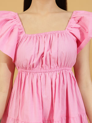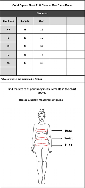 Solid Squared Neck Puff Sleeve One Piece Dress