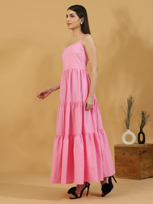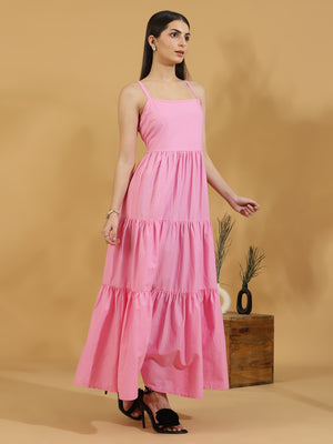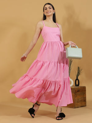 Solid Tiered Shoulder Strap Dress (Baby Pink)