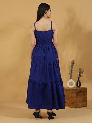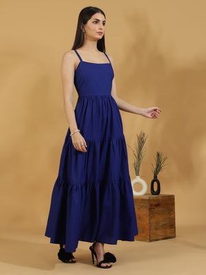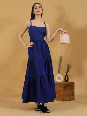 Solid Tiered Shoulder Strap Dress (Dark Blue)