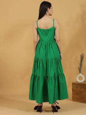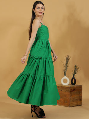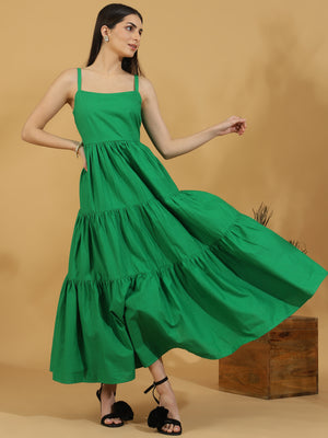 Solid Tiered Shoulder Strap Dress (Green)