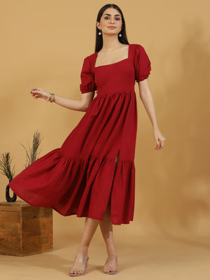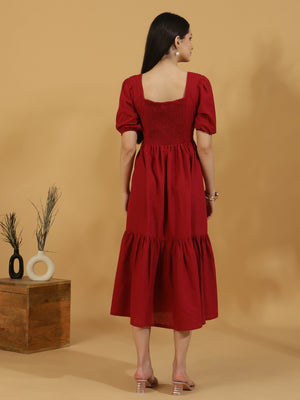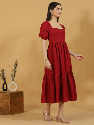 Blend modern and classic with the Squared Neck Sleeve Tiered Dress-sophisticated and stylish for any occasion.