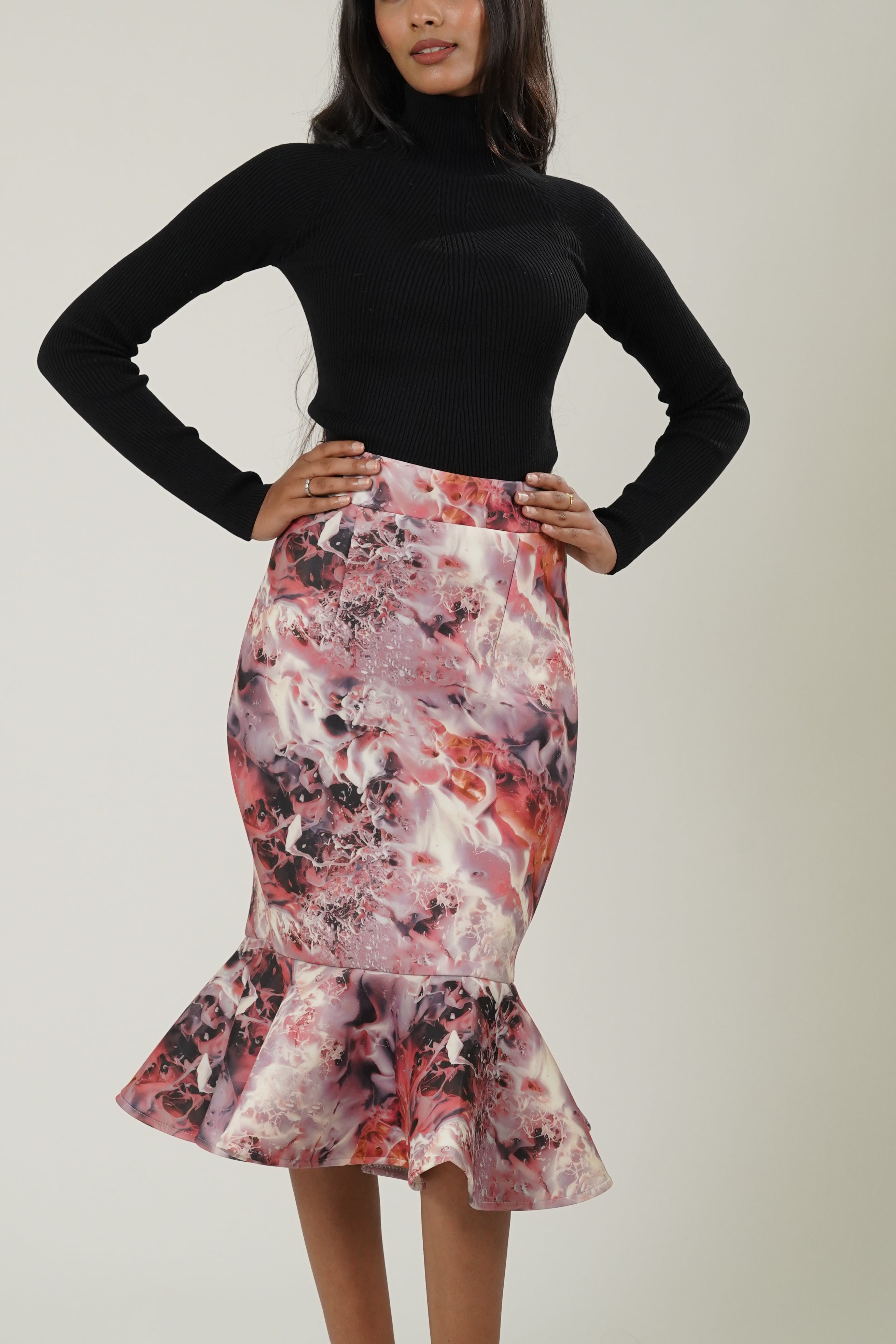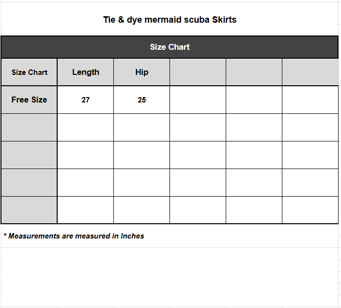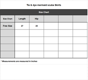 This tie & dye mermaid scuba skirt combines style and comfort with its free-size design. Crafted from stretchy scuba fabric, it offers a flattering fit that contours your silhouette while ensuring ease of movement. The unique tie & dye pattern adds a trendy, artistic touch, making it a versatile piece for casual outings or bold streetwear looks. Ideal for those seeking a blend of fashion-forward design and functional wear.